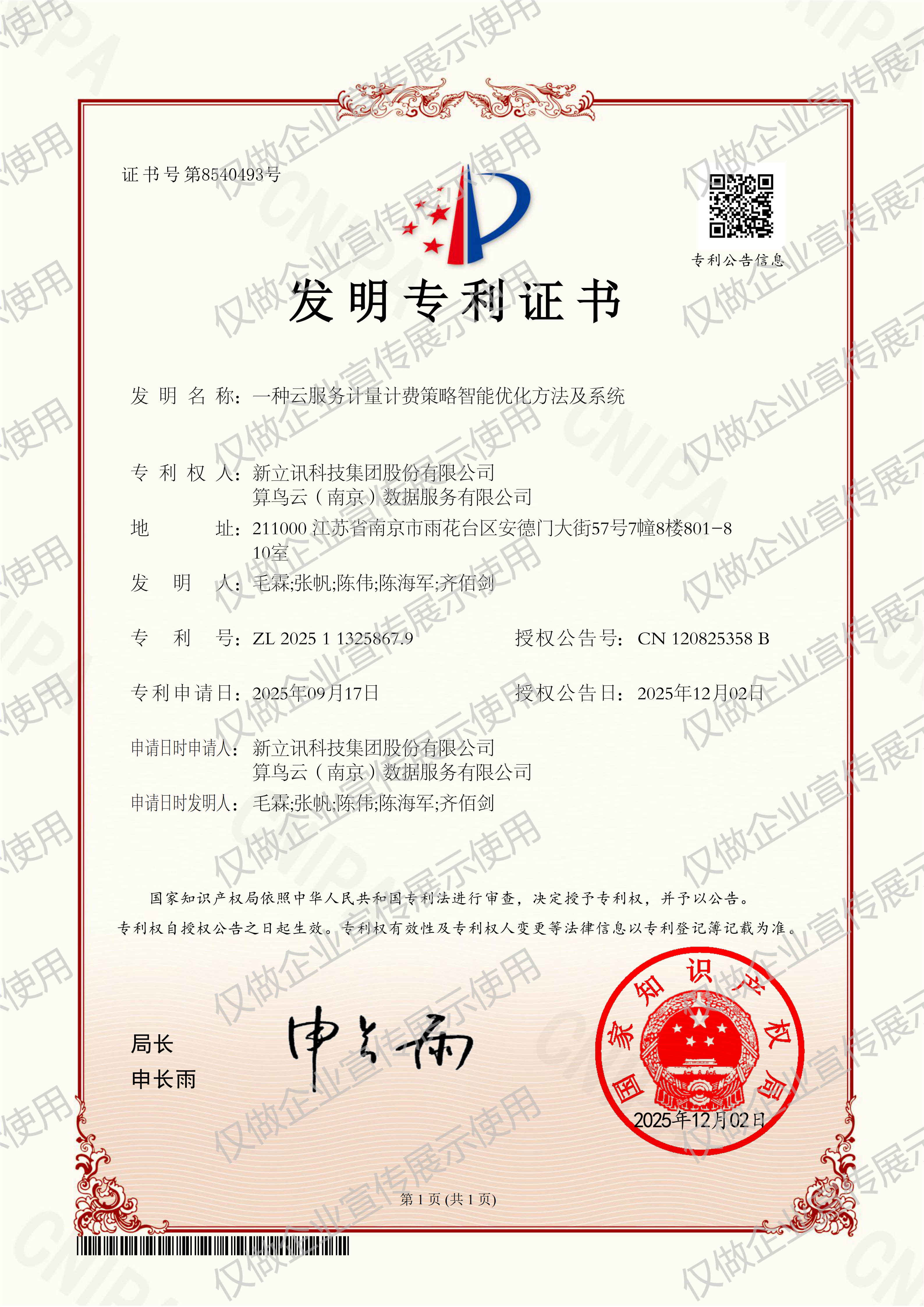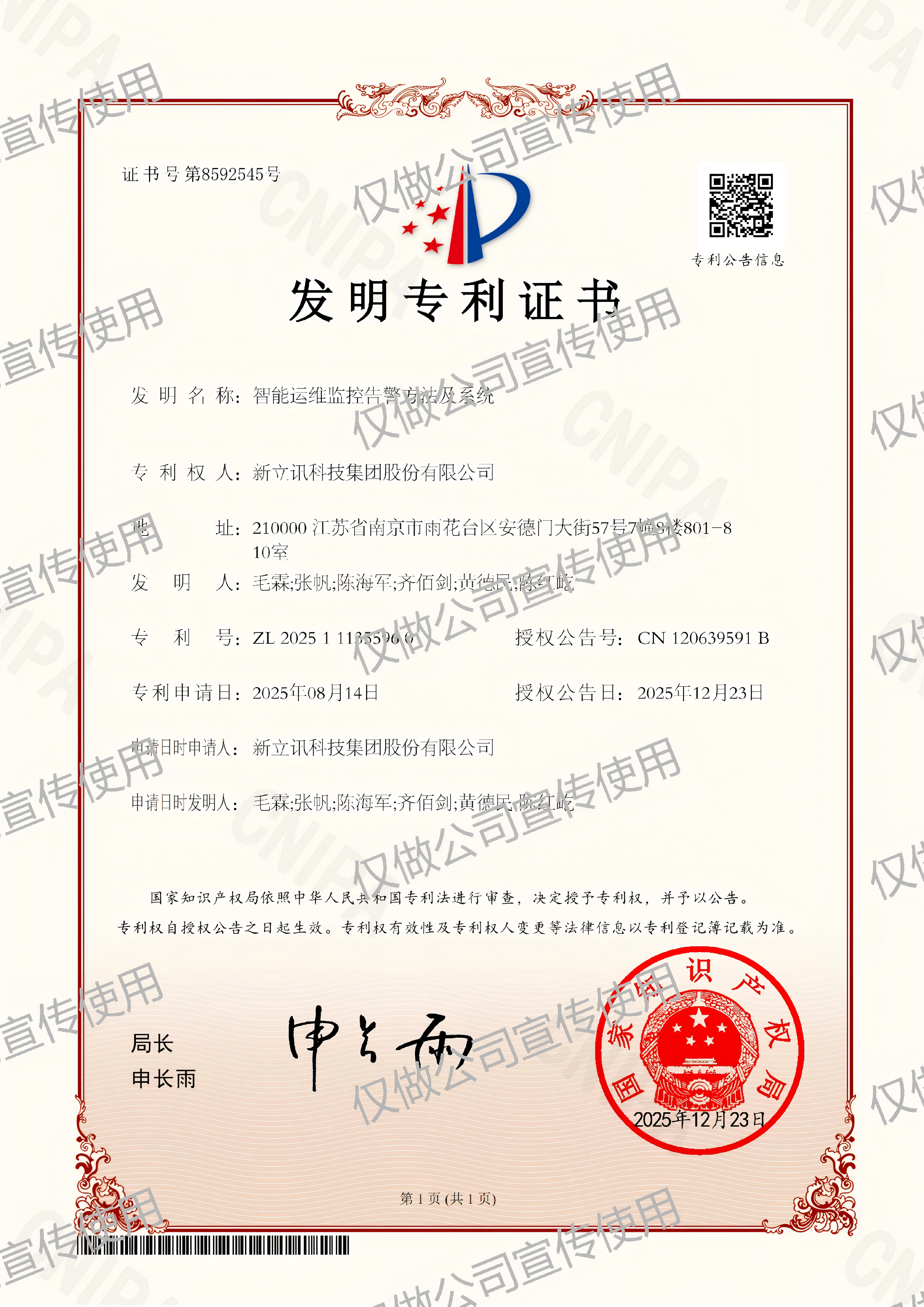 • 2019-12-03第30442750號 新立訊商標注冊證(國際分類:35)查看
