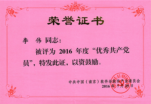 就在6月5日剛獲得“雨花有為青年”提名獎(jiǎng)的我司李偉同志近日再次受到南京市雨花臺(tái)區(qū)表彰,被中共中國(guó)(南京)軟件谷軟件文化產(chǎn)業(yè)委員會(huì)評(píng)為2016年“優(yōu)秀共產(chǎn)黨員”。