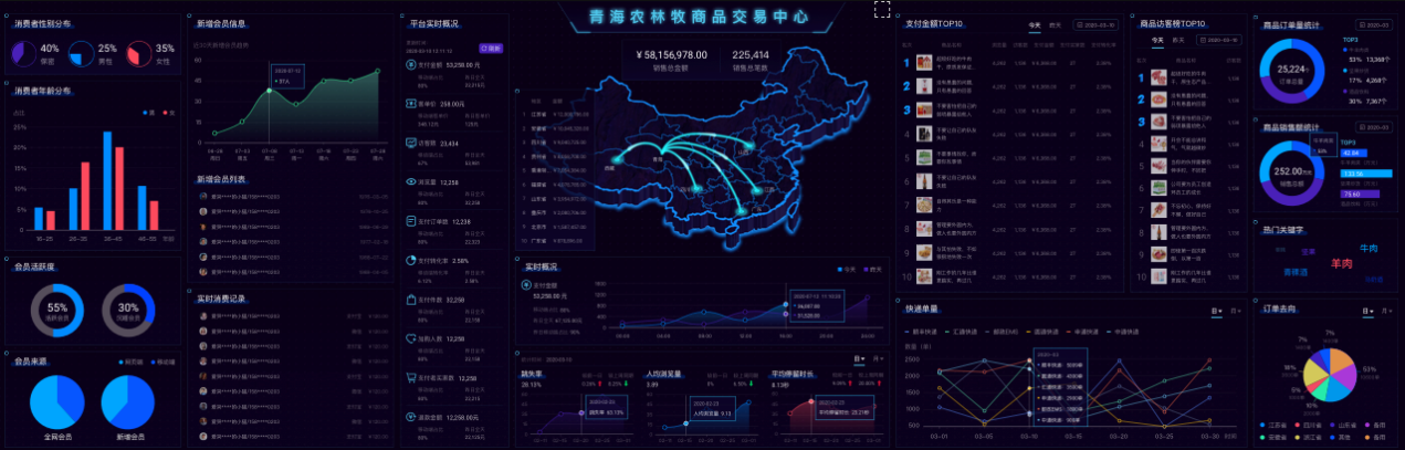 通過交易云平臺收集上來的數據,進行大數據清洗,建立客戶消費者畫像,進行實時計算、批量計算,做可視化展示處理,展示的維度有:區域流向分布、價格趨勢分析、銷量趨勢分析、對比分析、占比分析、登錄注冊統計、訂單成交量統計、訂單成交額統計、交易實時監控、支付實時統計、營銷效果分析、渠道轉化率分析、熱銷商品統計、通環節分析。